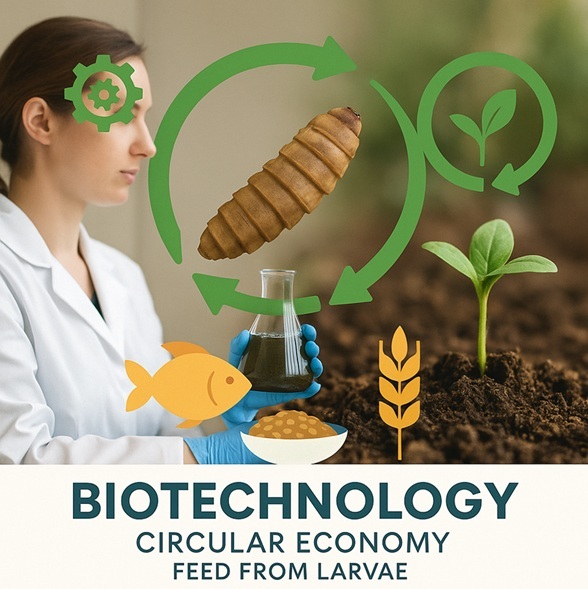Además, el proceso genera residuos sólidos estabilizados que pueden transformarse en abonos orgánicos y biofertilizantes, cerrando ciclos productivos y contribuyendo a la regeneración de suelos (Barragán-Fonseca et al., 2017). Esto convierte a la larva en un claro ejemplo de biotecnología aplicada, pues integra la gestión sostenible de residuos con la producción de insumos para la seguridad alimentaria y la agricultura ecológica (Čičková et al., 2015).