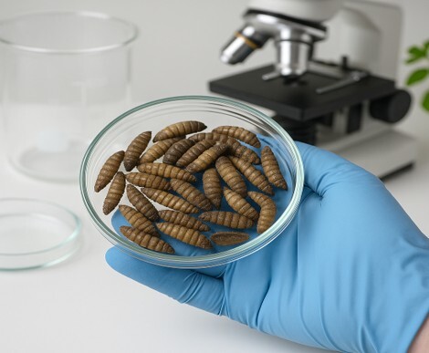 La larva de la Mosca Soldado Negro (Hermetia illucens) se ha consolidado como un motor clave de la bioeconomía y la economía circular, debido a su capacidad única para transformar residuos orgánicos en productos de alto valor. Estas larvas consumen grandes volúmenes de desechos agroindustriales, residuos alimentarios y estiércol, reduciendo la carga contaminante y convirtiéndolos en proteína de alta calidad y aceites, útiles para la producción de alimentos balanceados para aves, peces, mamíferos y mascotas (van Huis & Oonincx, 2017).